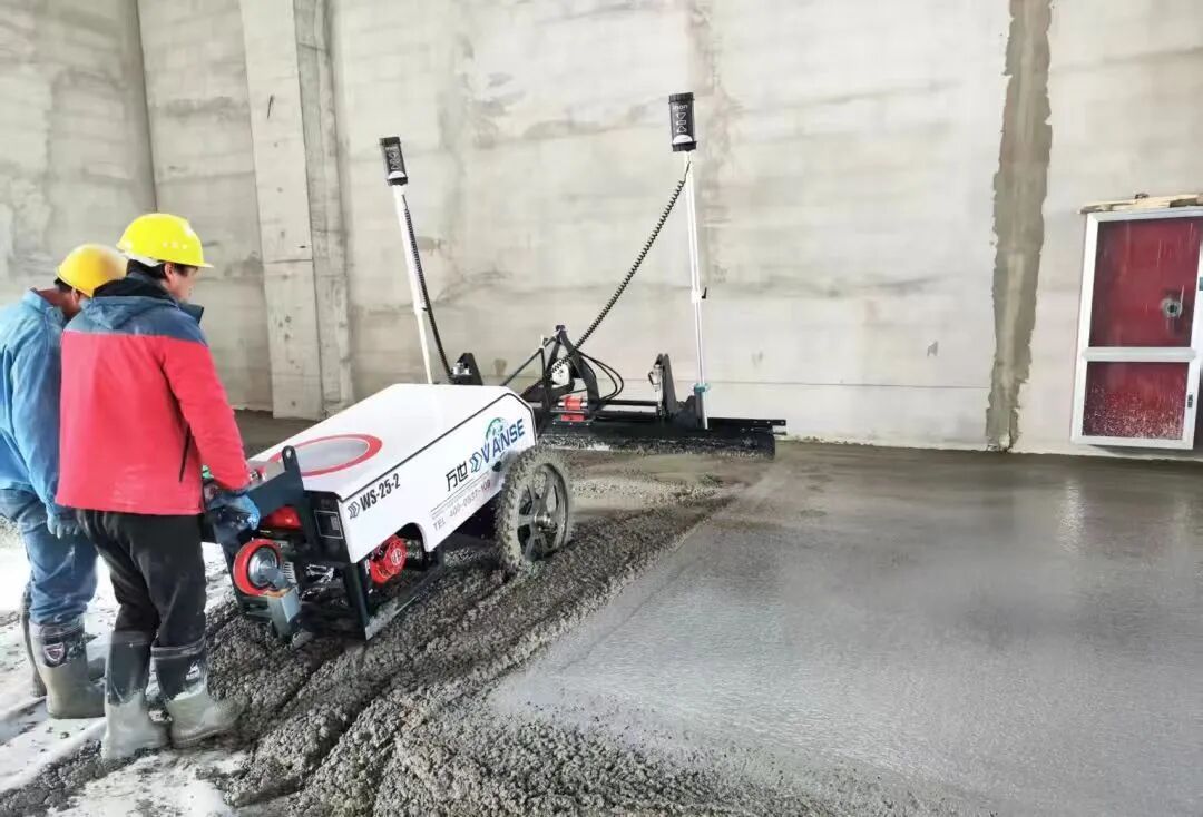知在创新,行在突破。面对混凝土地面施工中的精度控制难题,项目团队突破传统思维,率先引进激光整平机器人,通过激光发射器建立基准面,机器人实时采集高程数据并自动调节刮板,实现毫米级精度的地面平整。施工流程精简为场地准备、混凝土摊铺、机器人整平和收面养护四个环节,仅需1名操作手和3名辅助人员即可高效运作。这一变革性技术使施工效率提升40%,人力成本降低50%以上,并支持全天候连续作业,为后续工序节省15~20天工期,为保障项目整体进度奠定了坚实基础。