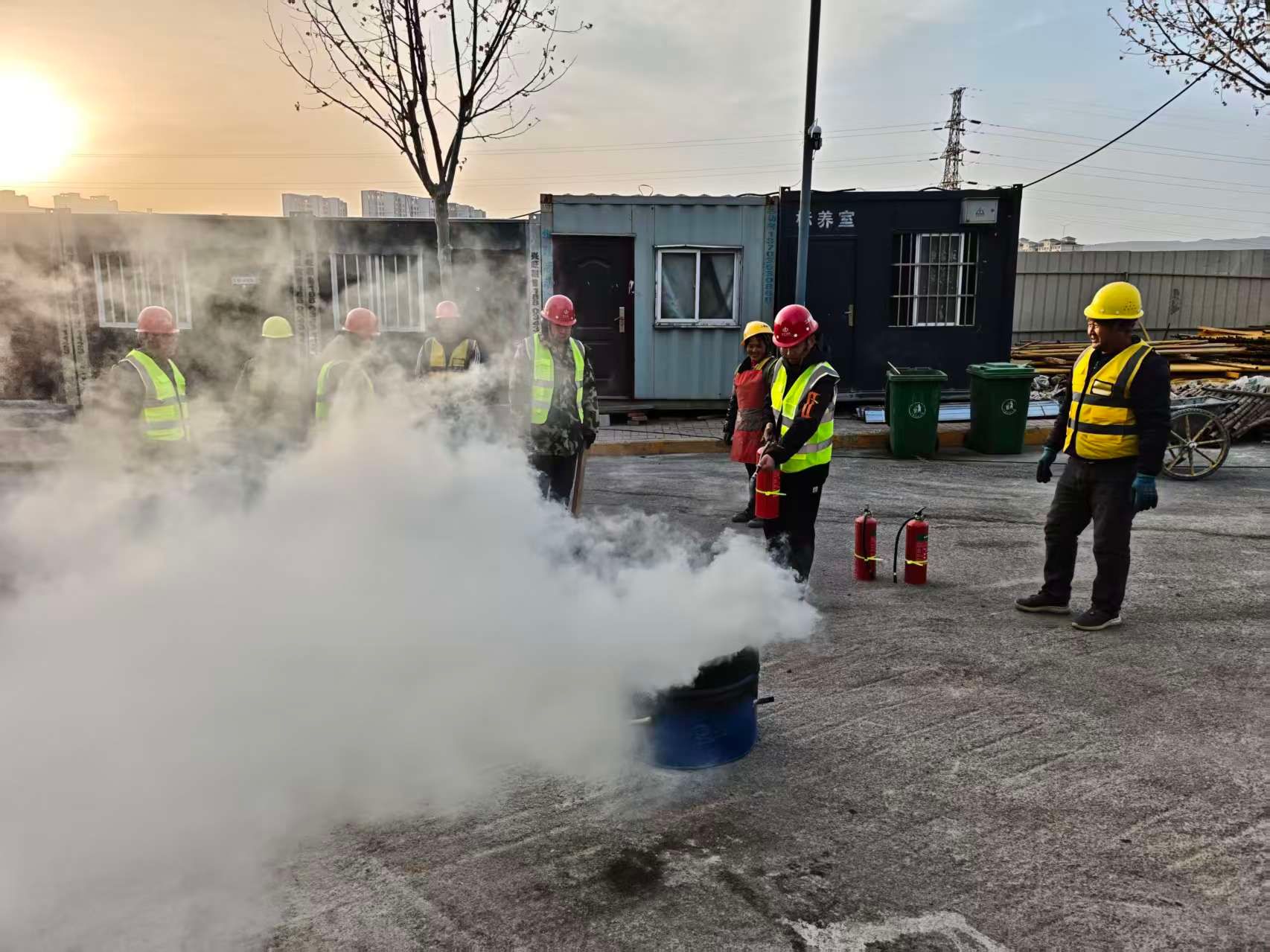 安全生产是工程建设的“生命线”,项目团队始终将安全管理摆在首位。为强化全员安全意识、提升应急处置能力,项目组织开展消防应急演练活动:从火情报警、人员疏散到灭火器实操、消防水带连接,演练环节紧扣施工现场实际,流程规范、分工明确。通过实战化的演练,不仅让施工人员熟练掌握了消防器材的使用方法与应急逃生技巧,更进一步完善了项目应急预案,筑牢了施工现场的消防安全防线。