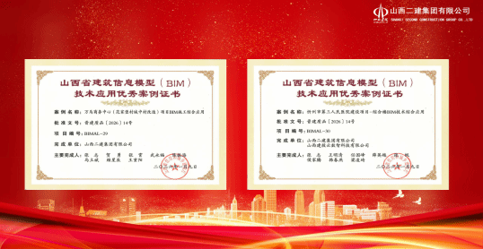 近日,山西省住房和城乡建设厅公布了《关于公布山西省建筑信息模型(BIM)技术应用优秀案例的通知》(晋建质函〔2026〕14号),全省共有31个项目入选优秀案例,二建集团4项BIM成果成功上榜。