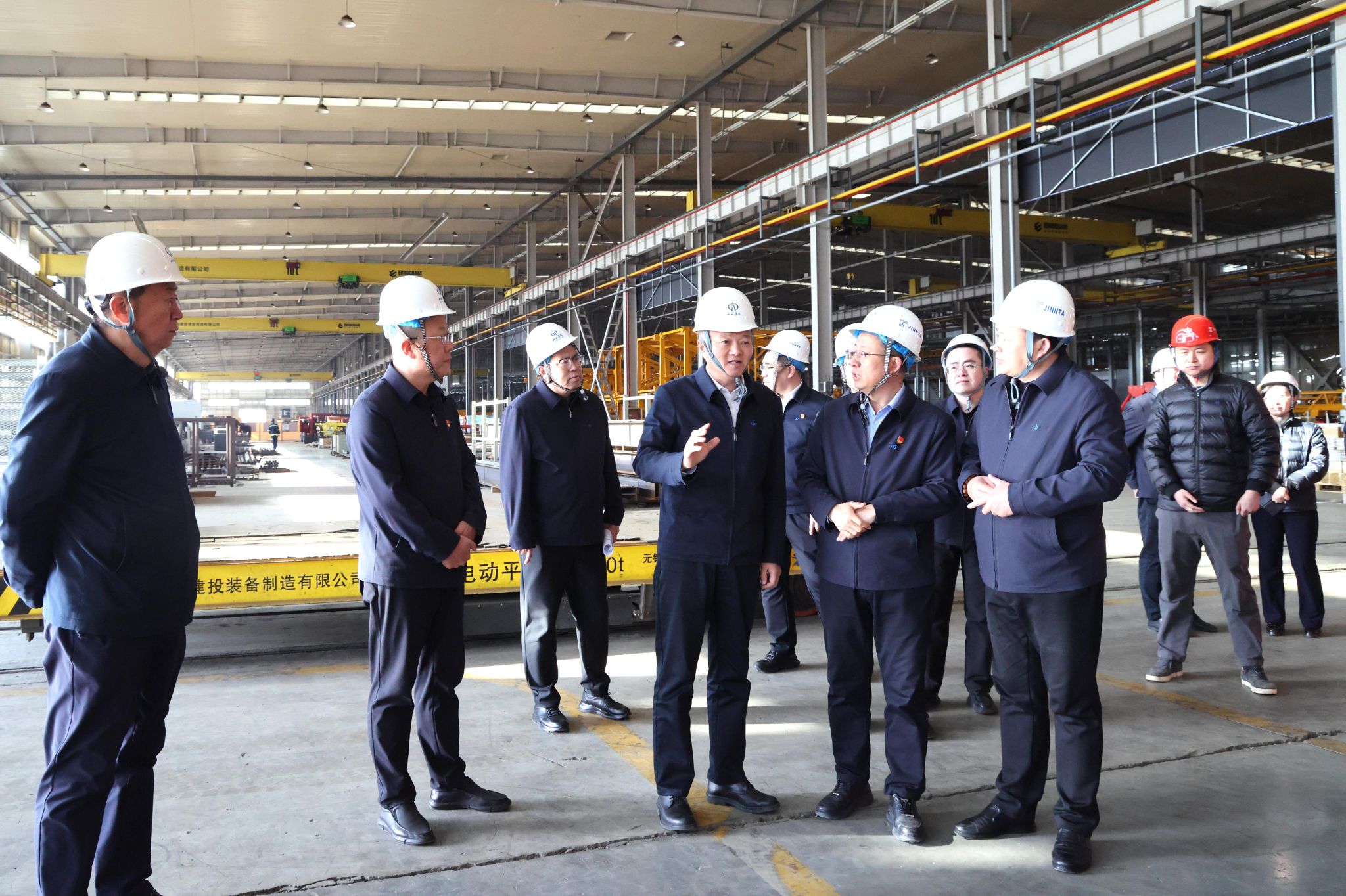 杜锐深入工程机械公司智能化联合厂房,参观了工程机械公司智能产品展示区,察看了塔式起重机片式标准节智能化生产线和涂装线,实地调研了正在筹备建设的机器人生产组装生产线和新品建筑机器人等设备。