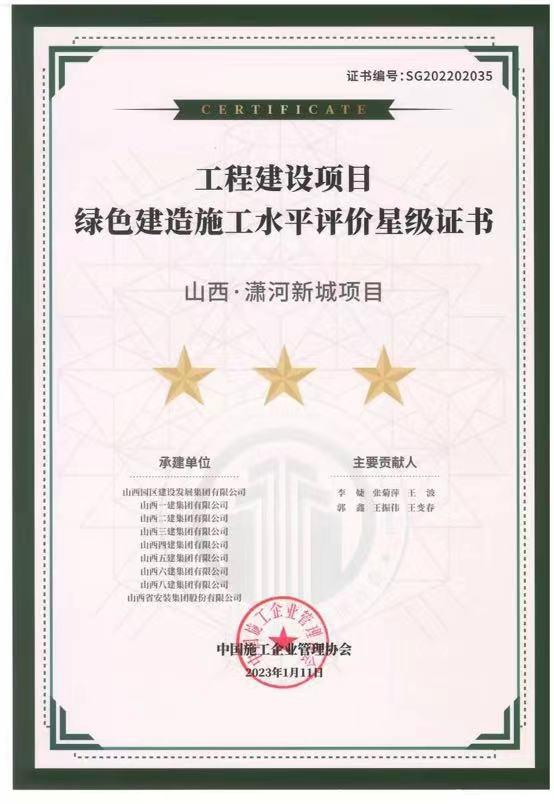 日前,中国施工企业管理协会发布《关于公布2022年第二批工程建设项目绿色建造施工水平评价结果的通知》,山西·潇河新城荣获“工程建设绿色建造施工水平三星评价”。