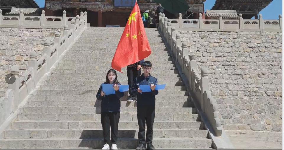 以青春之名,重温入团誓词。团员们面向团旗,佩戴团徽,高举右臂,重温誓词。