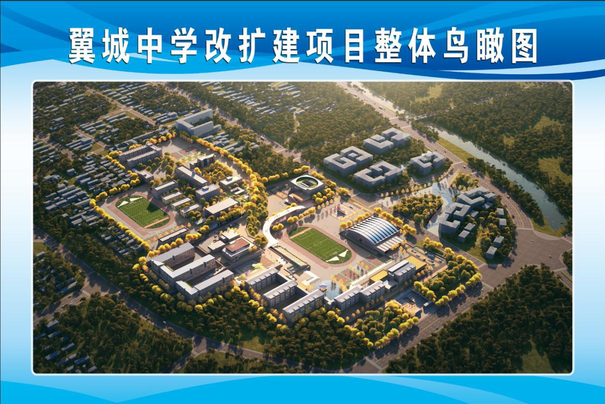 翼城中学校改扩建项目主要包括新建综合办公楼、3栋教学楼、2栋宿舍楼、体育馆、图书馆、报告厅、餐饮中心、洗浴中心、超市、室外体育场及附属活动场地、配套道路广场、绿化景观等设施。项目建成后,办学规模可达30轨制,90个教学班,可同时容纳4500名学生,将进一步提升学校的硬件设施条件,增强学校办学能力,提升教育服务水平,促进该县教育事业高质量发展。