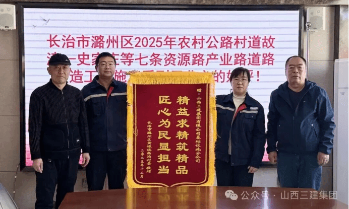 12月8日,长治市潞州区黄碾镇西沟村委向基础设施分公司赠送了一面写有“精益求精筑精品 匠心为民显担当”的锦旗,对分公司在潞州区2025年农村公路村道(故漳—史家庄等七条资源路产业路)改造工程中的出色表现予以高度认可。村委赞扬了全体施工人员的辛勤付出与专业担当,同时也对分公司秉持匠心、深耕民生基建,高质量高效完成道路改造任务,切实助力地方交通发展与民生改善,表示诚挚感谢。