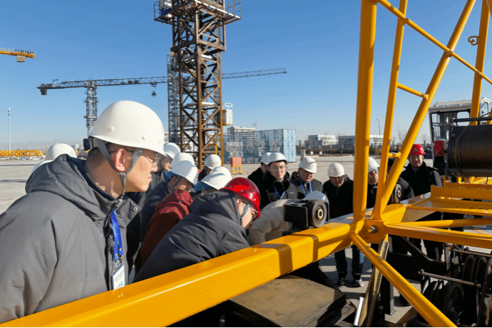 现场教学以“实景赋能、精准传技”为核心,依托公司智能化联合厂房和东广场产品展示区两大核心实训场景展开。在专业讲师的带领下,参训学员深入生产一线,沉浸式参观塔式起重机片式标准节生产线和智能化涂装生产线,近距离观摩塔式起重机、施工升降机、建筑防护装备、建筑机器人等机械设备的运行演示,深入了解各项设备的技术原理与安全保护装置。