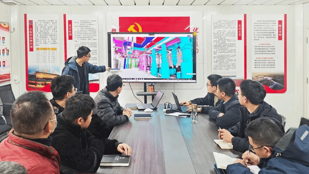 项目党支部围绕“星引擎”党建品牌,创新打造“星航程”项目党建子品牌,扎实推动党建与生产经营深度融合,组建“星航程党员攻坚队”,设立党员责任区、技术攻坚小组,将党建工作贯穿项目全流程、各环节,以党建“红色引擎”驱动项目建设提速增效。面对管道泵组冲洗这一关键节点,党员攻坚队主动亮身份、挑重担,牵头制定《分系统作业方案》,精准统筹循环水泵调度与运转,高效推进任务落地。党员责任区实行“包片负责”,以党员先锋模范作用促进质量管控提质升级。党员技术创新小组聚焦施工瓶颈,深耕细研、攻坚克难,成功破解管线交叉排布、空间受限施工等多项技术难题,保障关键节点安全、有序推进。